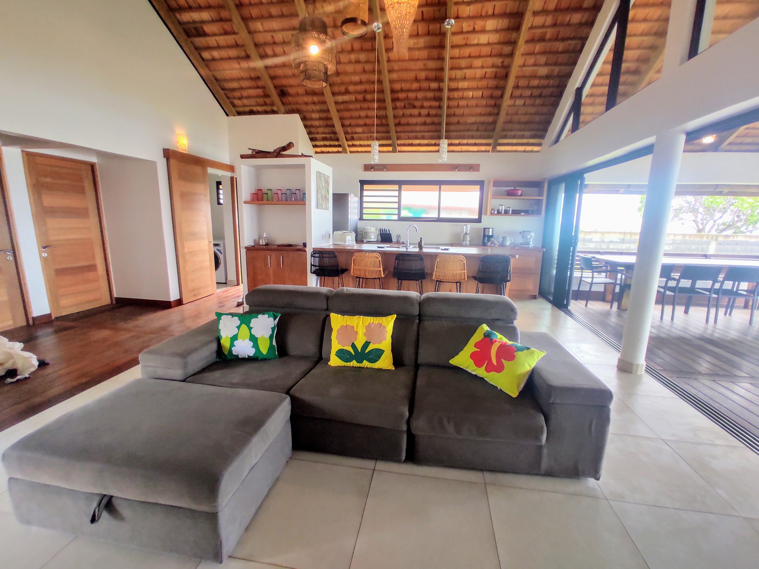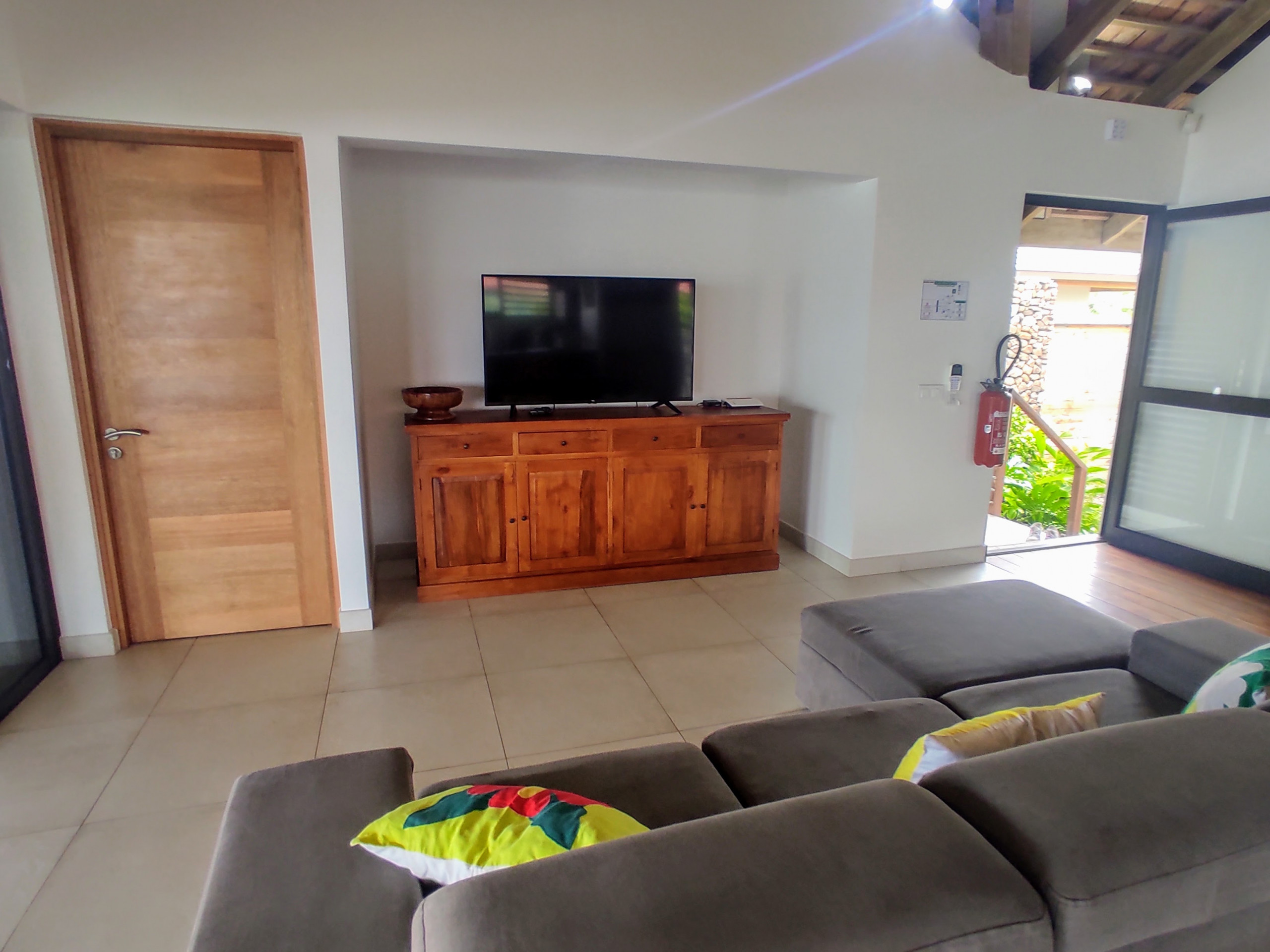 *The Living Room, elegant and understated, with a 3-seater sofa and its Smart TV with Netflix, from where you can comfortably discover the programmes and shows of Fenua as well as your favourite series.