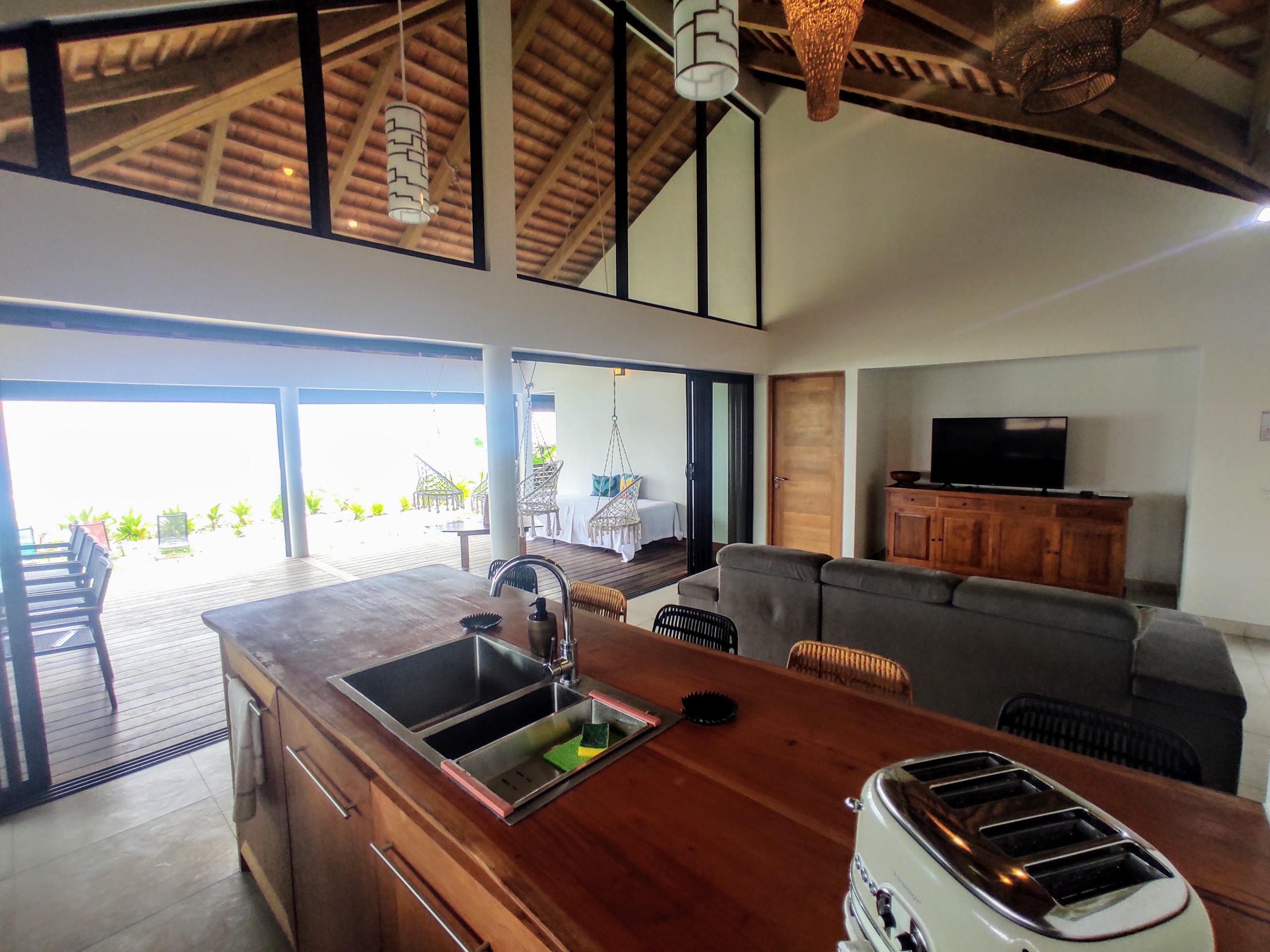 The terrace with sea view and overlooking the island of Tahiti is fully equipped with table, chairs... to have your meals, relax, or enjoy a well-deserved aperitif after an intense day of discovering this paradise on Earth.