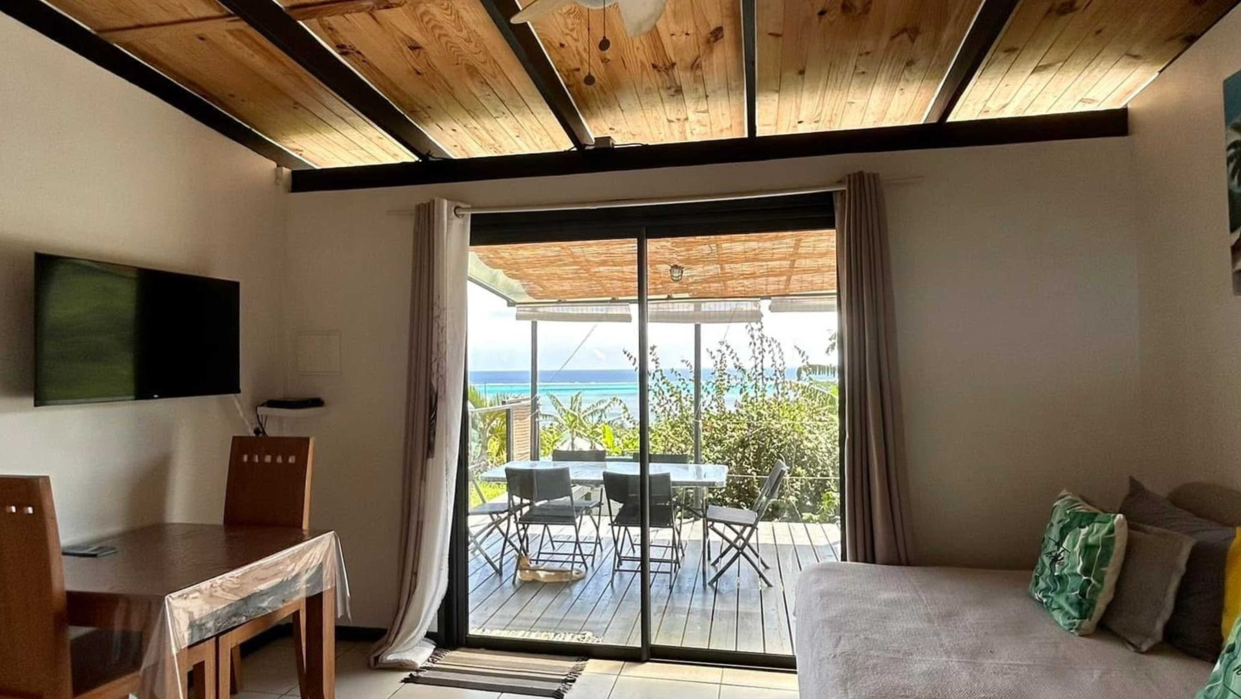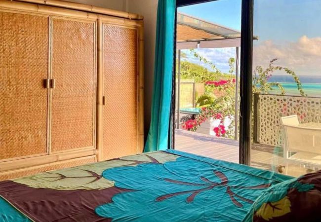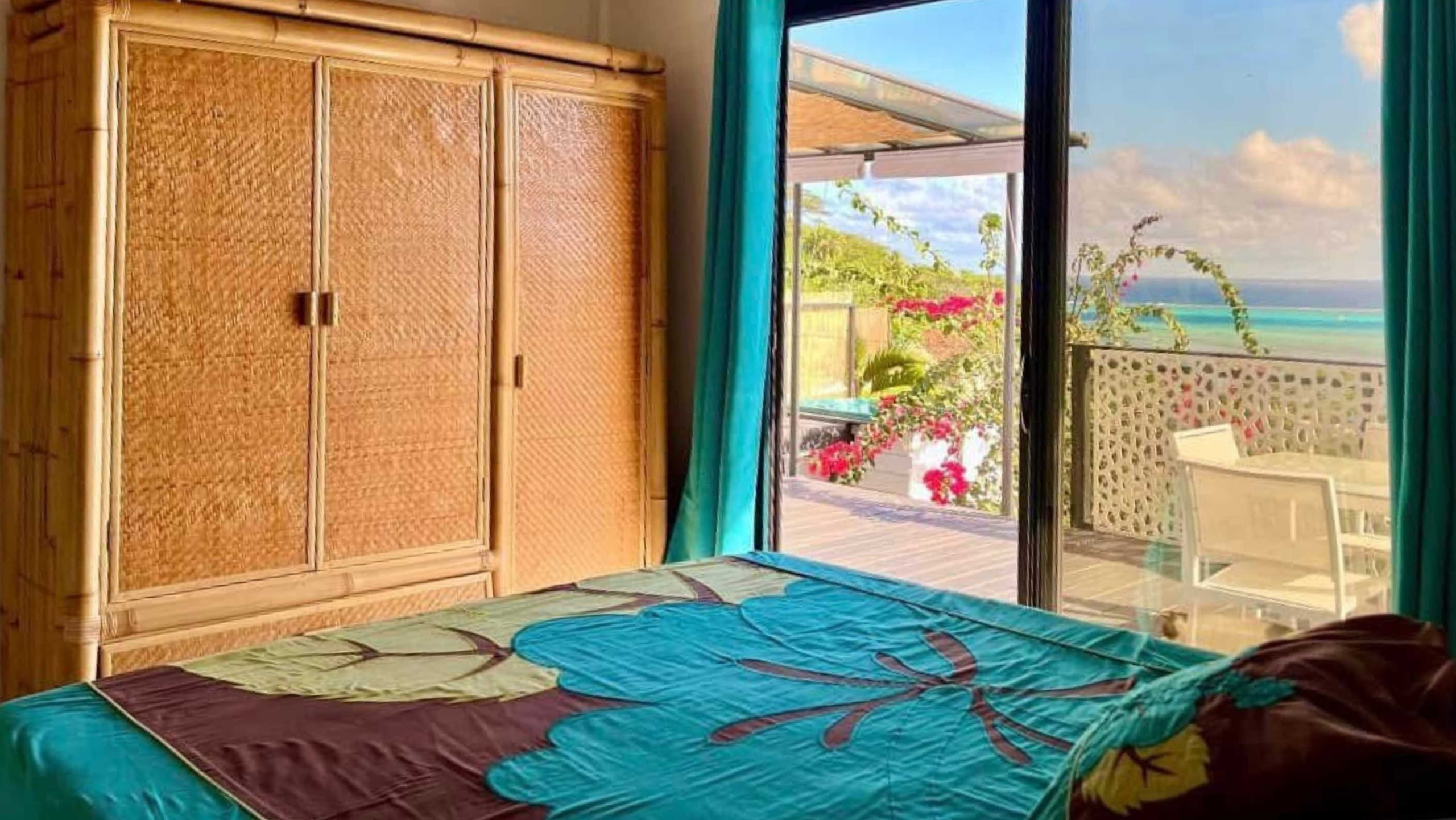 This luminous and peaceful cocoon is ideal for a stay as a couple, with family or friends with a capacity of 7 people. Upon your arrival, let yourself be amazed by the panoramic view of the Haapiti lagoon, visible from the bedrooms and the terrace. You might even catch a glimpse of whales during their migration season!