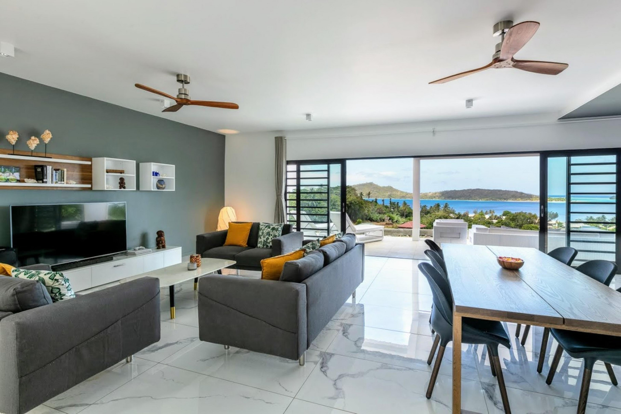 The spacious living room of the villa is bright and divided into 2 distinct areas: