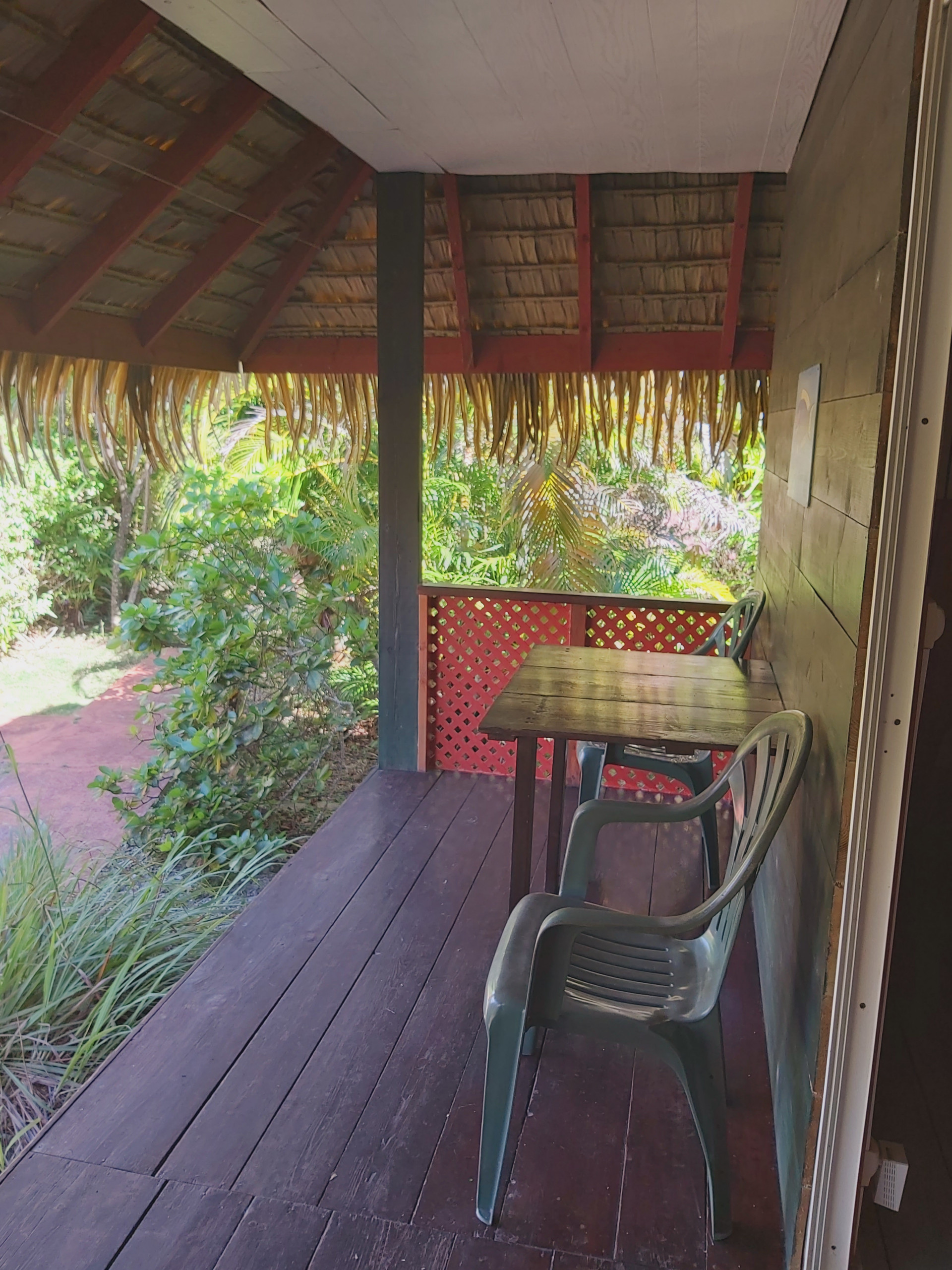 You will be warmly welcomed directly at the airport by your host who will drive you to the accommodation. The property consists of several Polynesian style bungalows. Each bungalow has its own shower room, fan and private terrace.