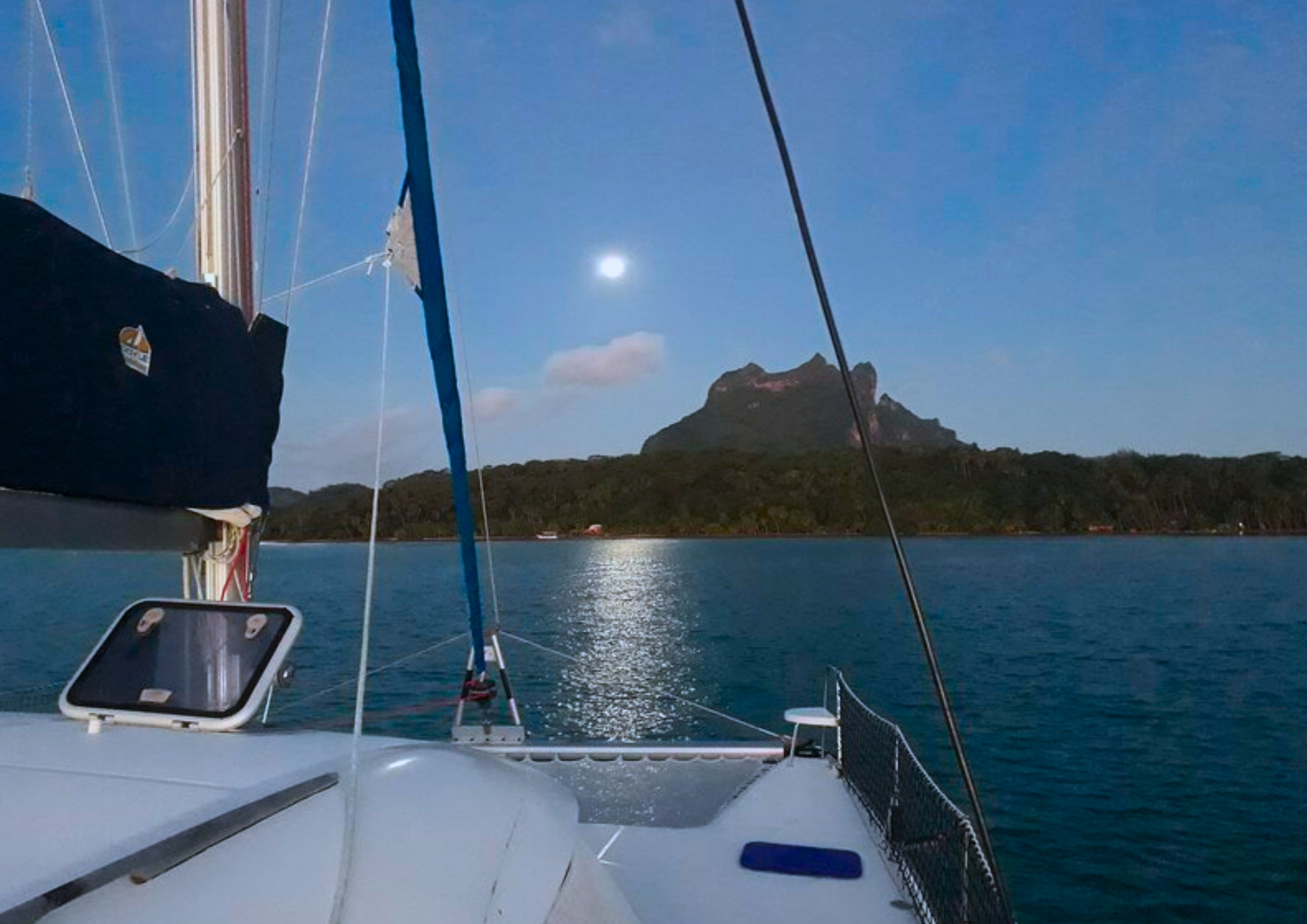 Admire all those exceptional blues offered by the lagoon and let yourself be lulled by the softness of Polynesian sunsets, comfortably installed on the catamaran's foredeck.