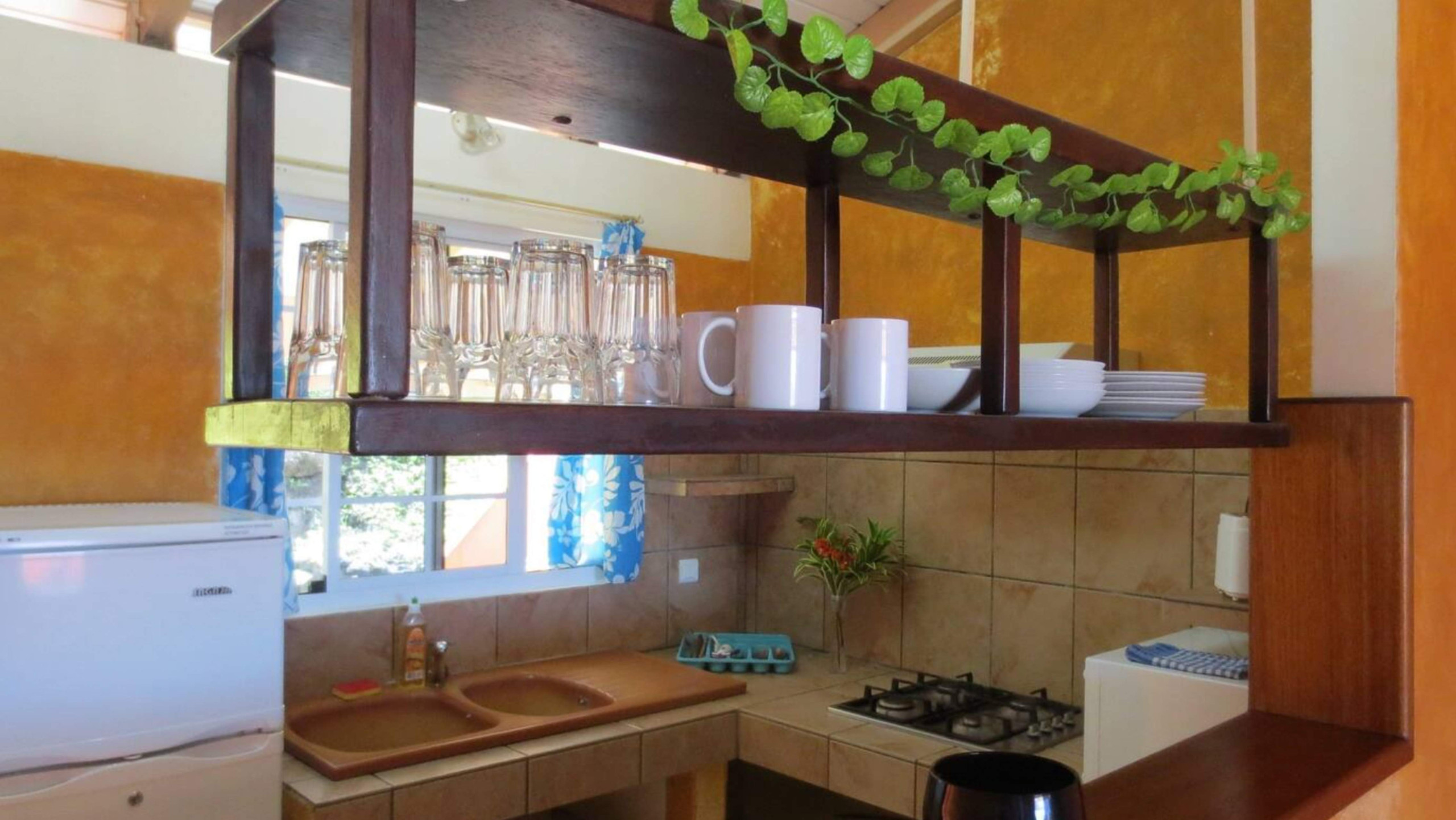 The residence is nestled in a lush tropical garden, conducive to relaxation and serenity. Travellers enjoy private accommodation and friendly common areas: barbecue, landscaped shared zones and verdant gardens. WiFi and laundry service are included to complete your stay.