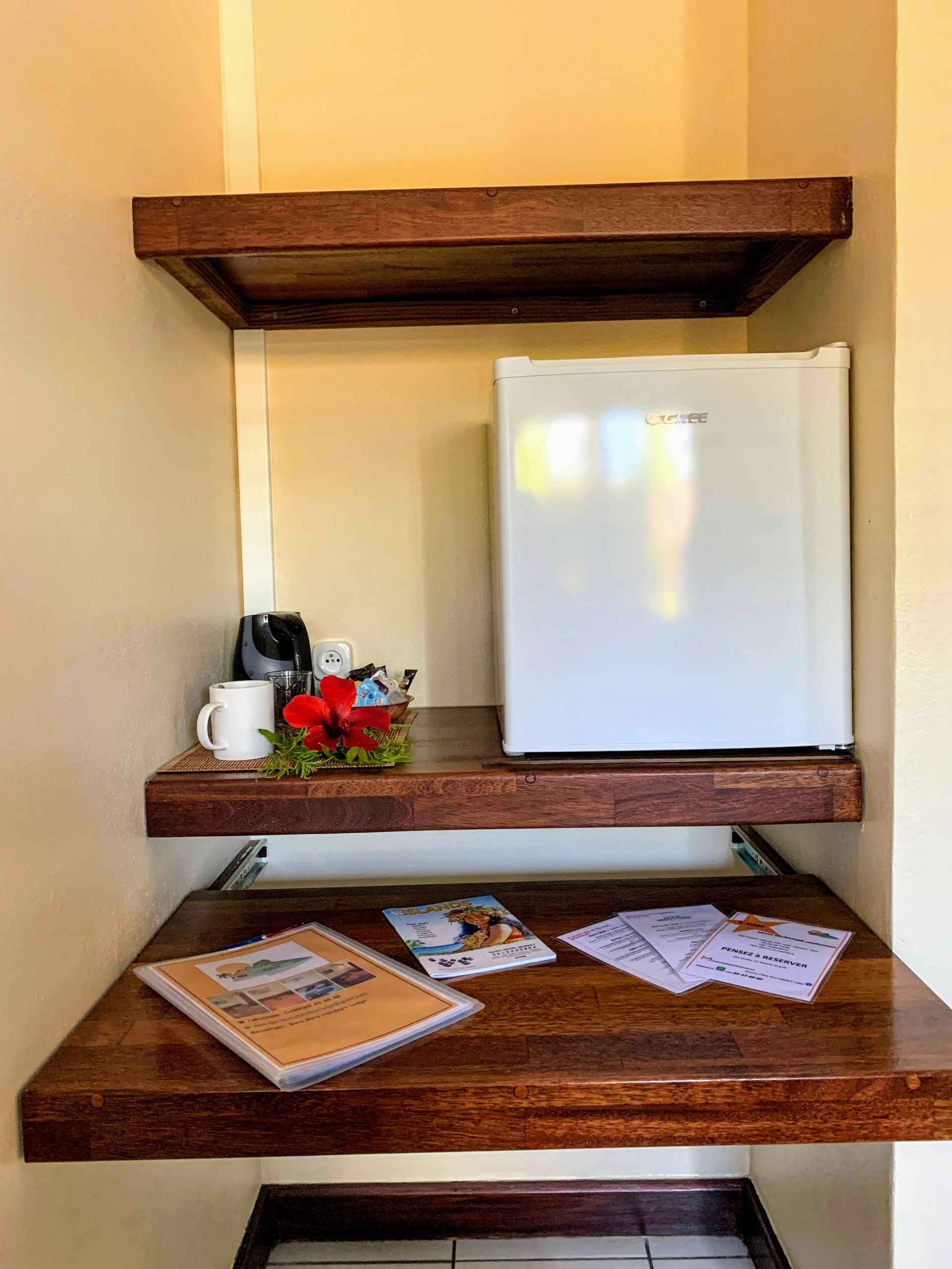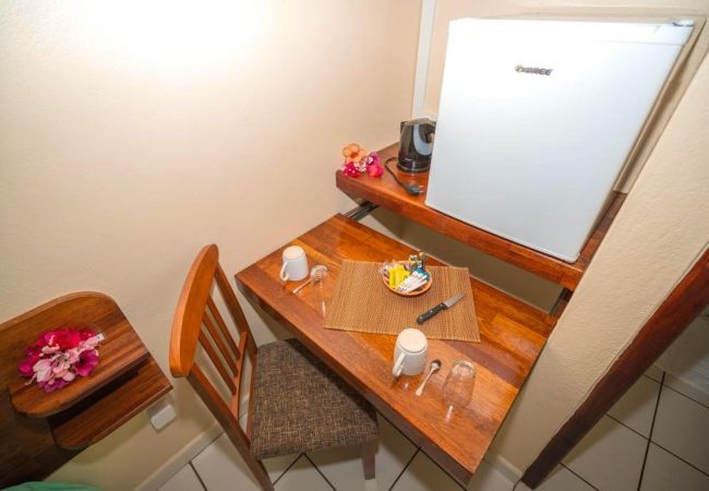 The Studio can accommodate up to 3 people and offers all the necessary comfort for a successful stay in Bora Bora. You will benefit from a shared panoramic terrace in the residence, ideal for admiring the spectacular view of the lagoon and mountains or enjoying the sunsets.