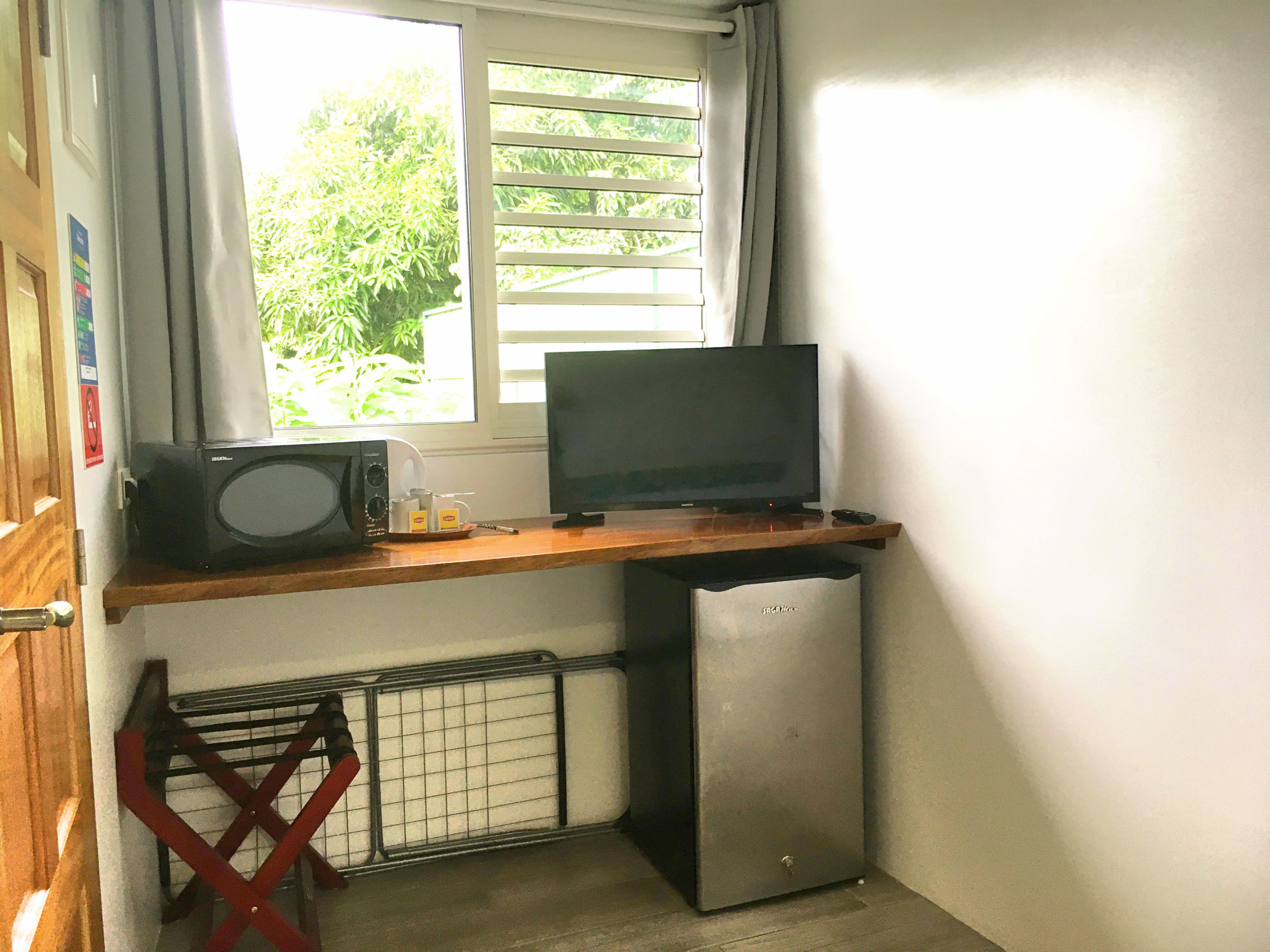 Located in the heart of a small guesthouse, surrounded by greenery and fruit trees, this beautiful studio has a king-size bed, a bathroom with toilet and walk-in shower, a storage area with safe, a mini fridge and microwave, and a TV. The property's accommodation services are provided to "3 Tiares" standards!