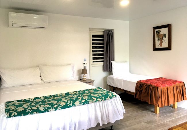 Located in the heart of a small guesthouse, surrounded by greenery and fruit trees, this beautiful studio has a king-size bed, a bathroom with toilet and walk-in shower, a storage area with safe, a mini fridge and microwave, and a TV. The property's accommodation services are provided to "3 Tiares" standards!