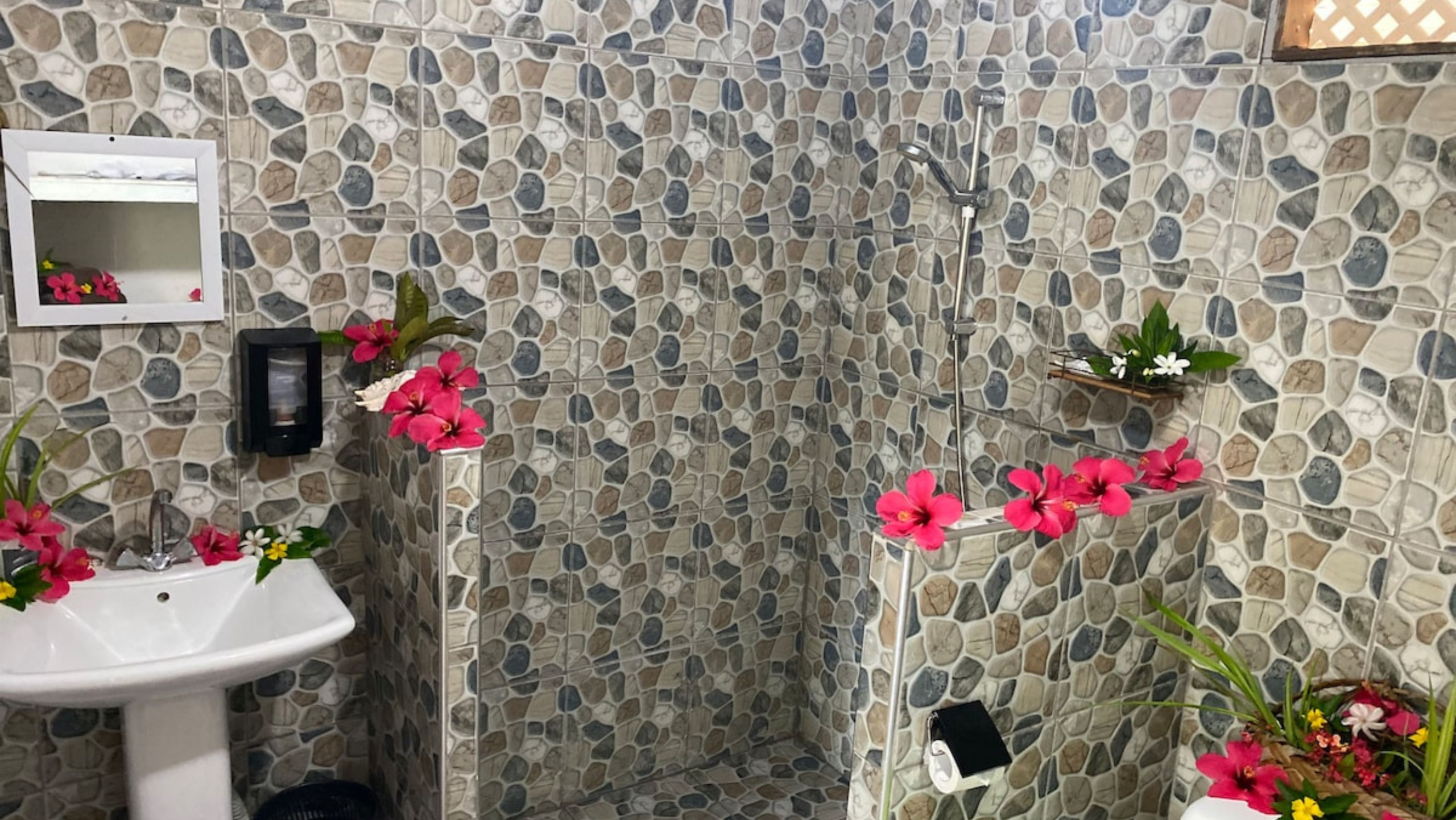On site, a snack is open at lunchtime, and a neighbouring guesthouse offers breakfast and dinner, available by reservation. For your travels, it is possible to rent scooters directly on site, convenient for exploring the island at your own pace. Finally, the beach is just a few steps away, with free kayaks available to discover the unique colours of the lagoon.