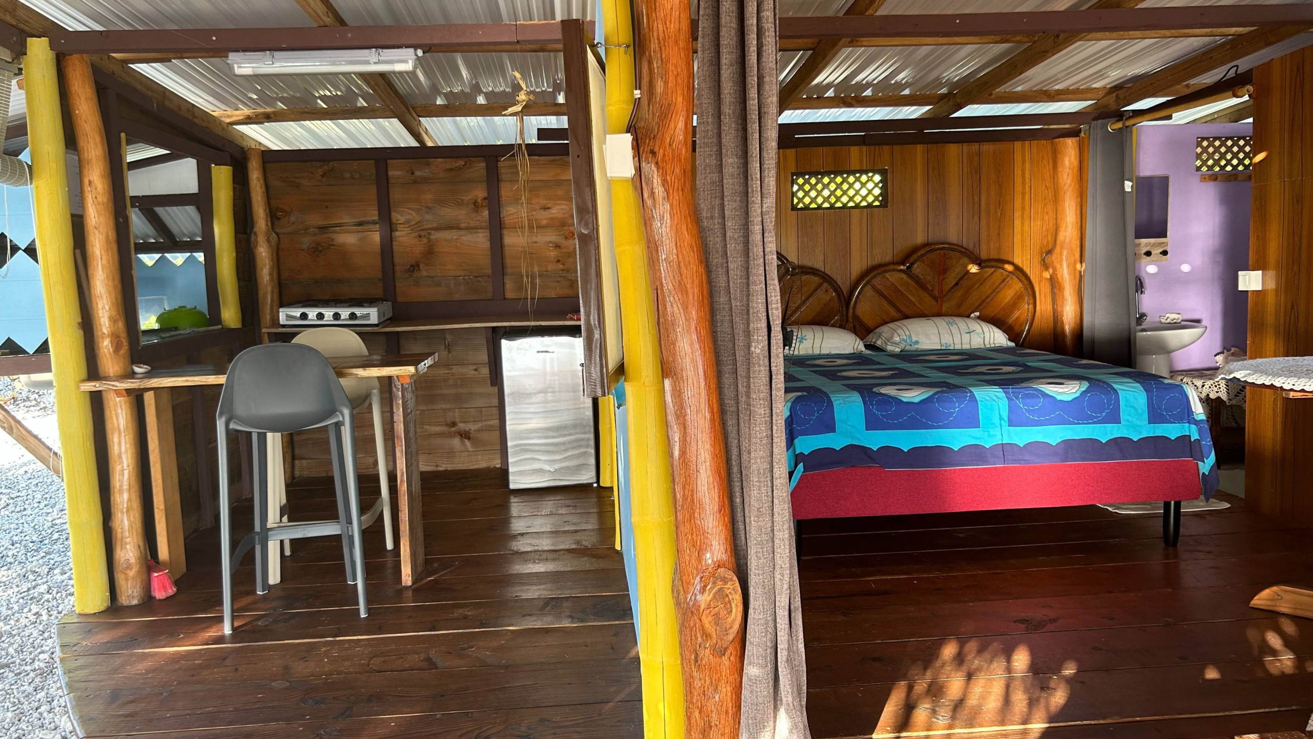 The accommodation welcomes 2 people with a large double bed and has a private bathroom with shower and WC. The fitted kitchen, open to the outside, allows you to prepare your meals, and a small covered terrace invites you to enjoy your meals facing the lagoon.